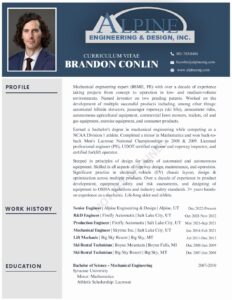 Brandon Conlin – Mechanical Engineering Expert CV 2025
