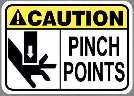 During operation, the operator’s hand became caught between the trailer bed and the frame, resulting in the loss of his thumb and finger. This type of hazard is known in the engineering and safety industry as a “pinch point.”